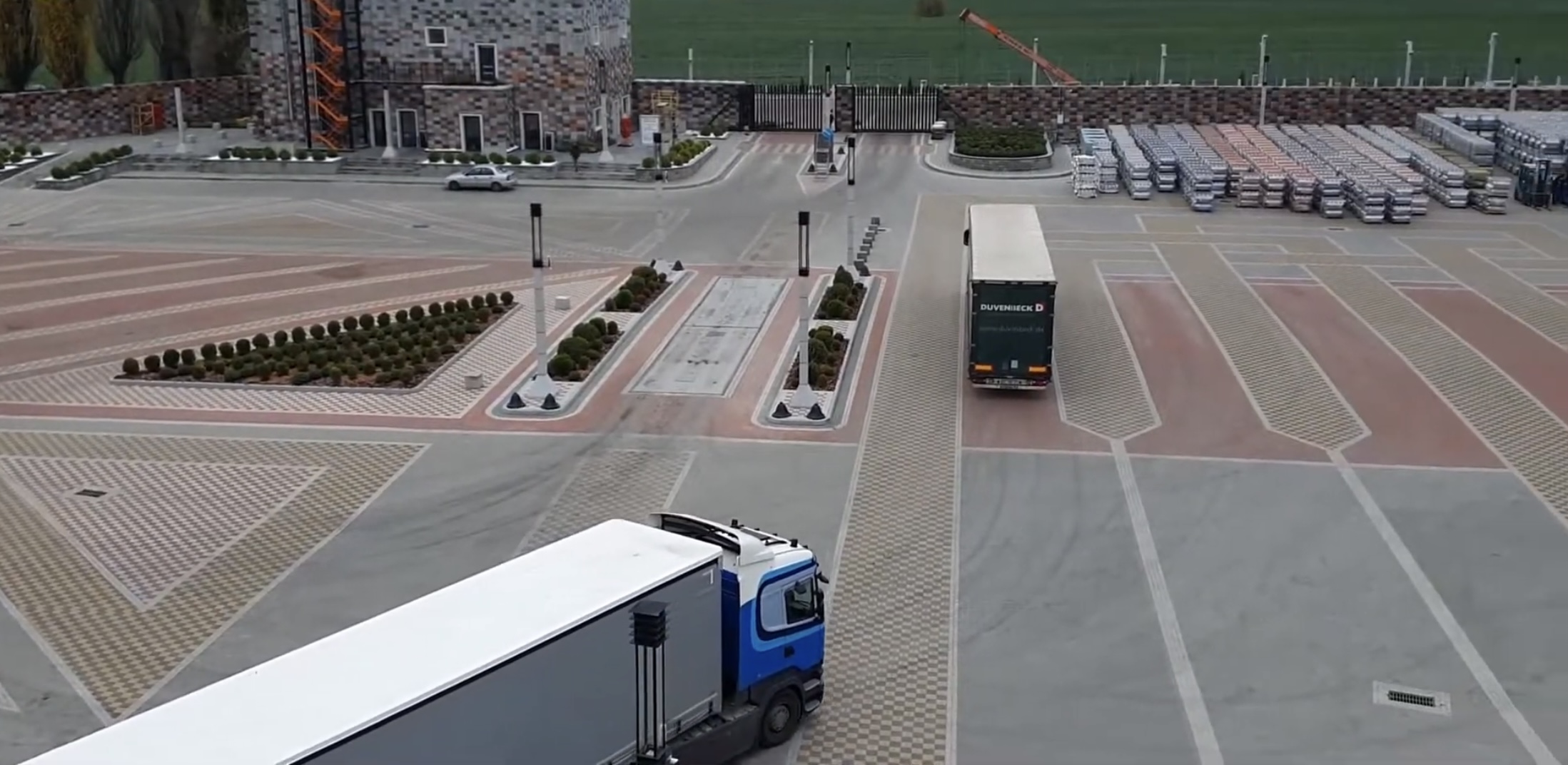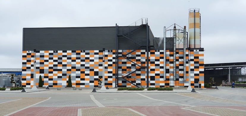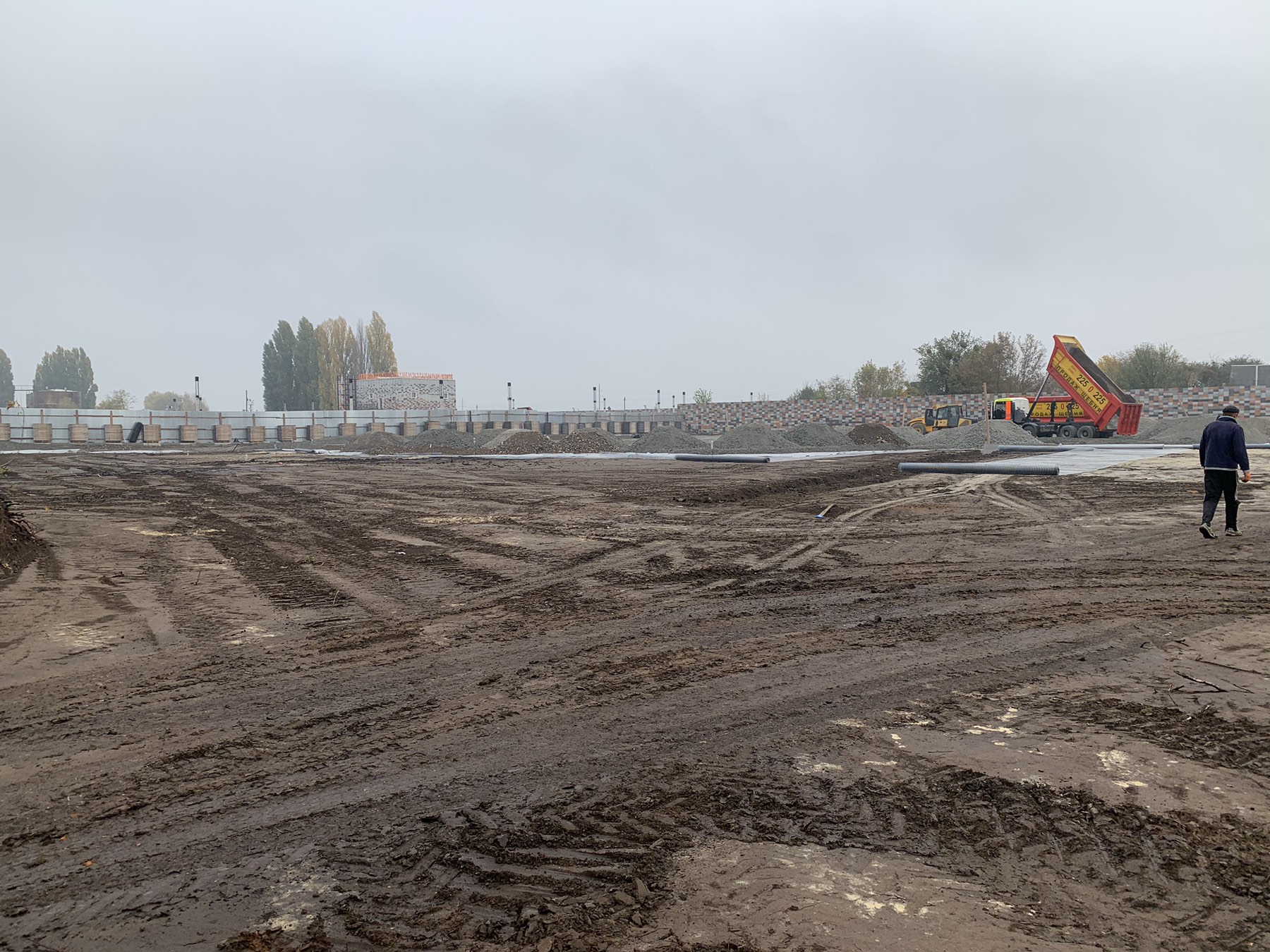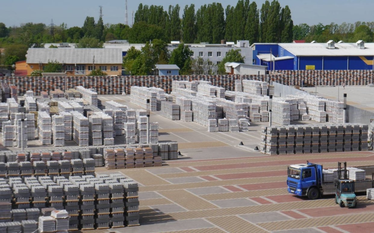 Будівництво заводу бетонних виробів в м. Обухів, Київська обл. Складські території та під’їзні дороги для вантажного транспорту. Зміцнення шарів ґрунту, з подальшим вкладанням плитки ФЕМ. В якості армуючого матеріалу використана зварна поліпропіленова георешітка 30/30 кН/м. В якості фільтруючого прошарку використаний поліпропіленовий термоскріплений геотекстиль 150 г/м2.